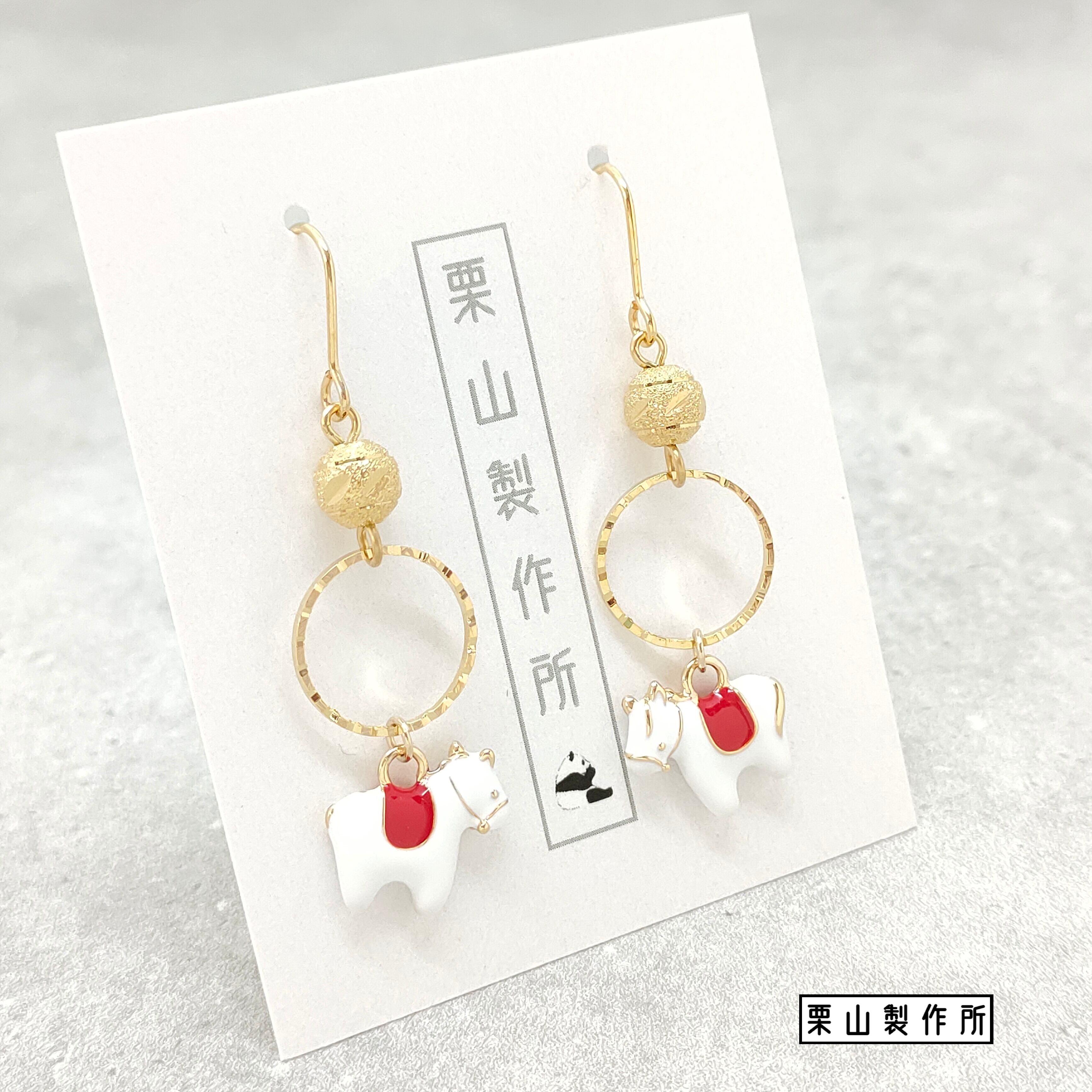 ピアス・イヤリング KC/干支シリーズ!今年は午年ですね!新しい挑戦や目標に向かって進む年!愛嬌マシマシの午のピアスで!