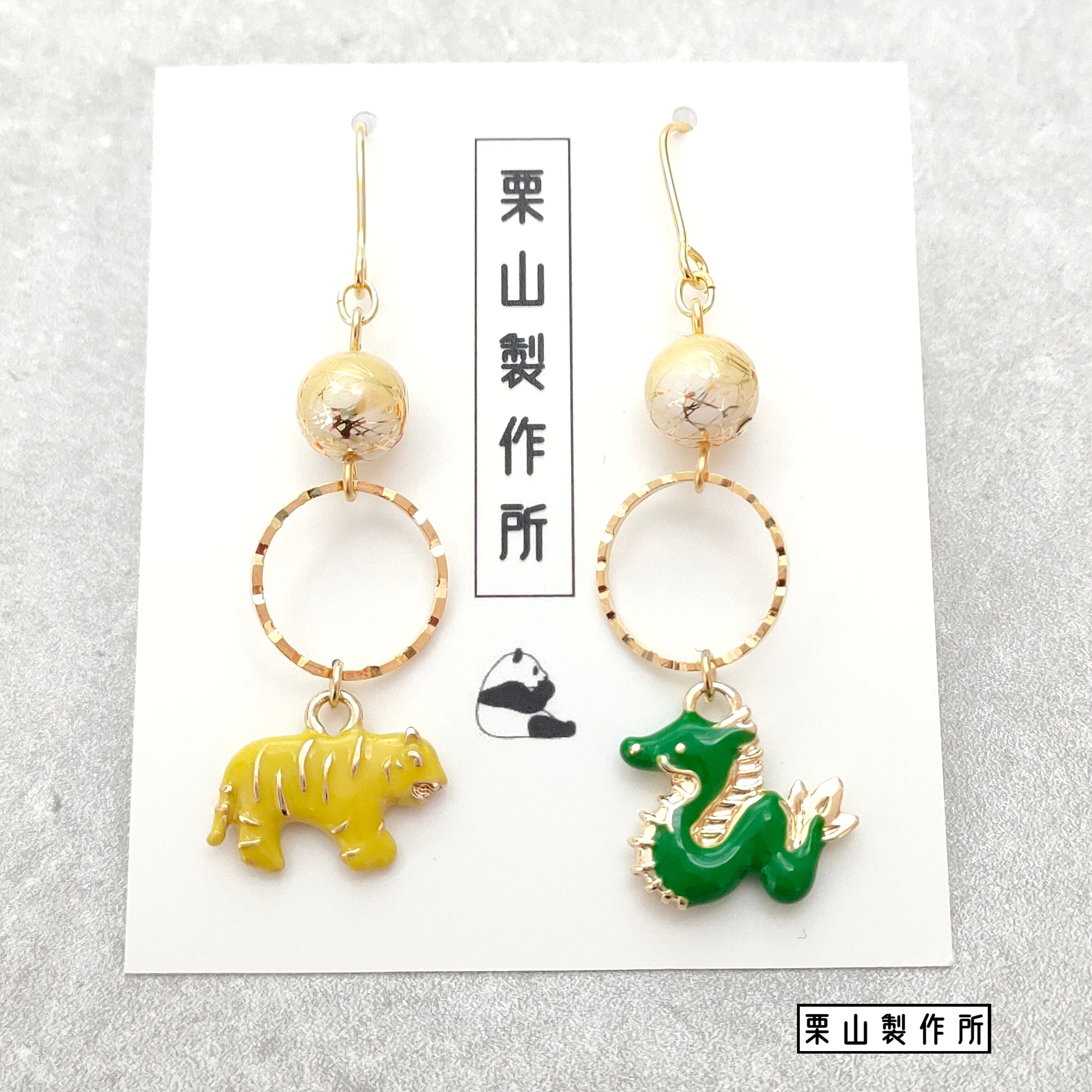 と! 向かい合った、虎と龍に唐草パールのピアス・イヤリングも!