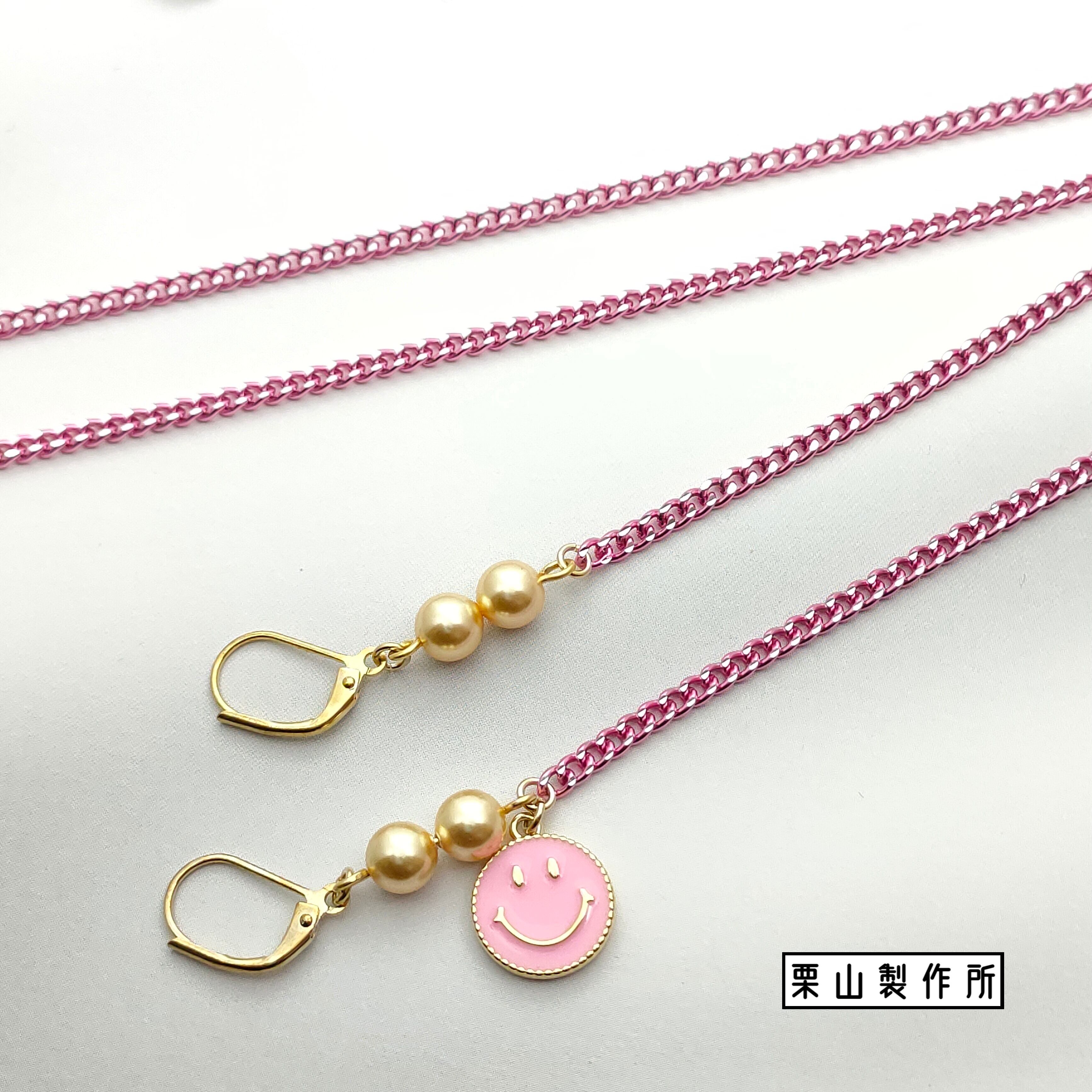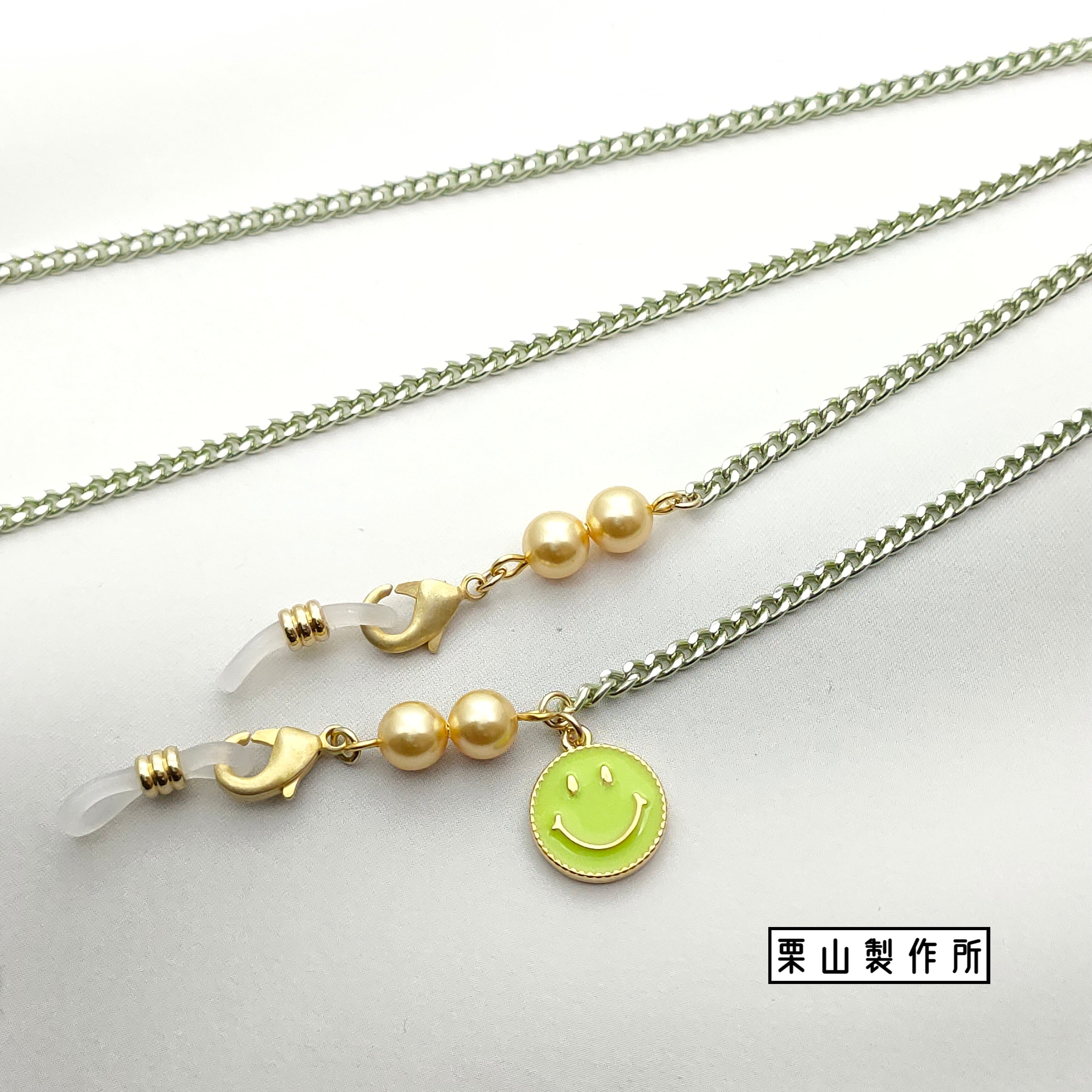 メガネ・マスクチェーン BC/笑顔満点!パステルスマイルチャームに軽量アルミチェーンで、軽快!ポップに元気ニコニコ!