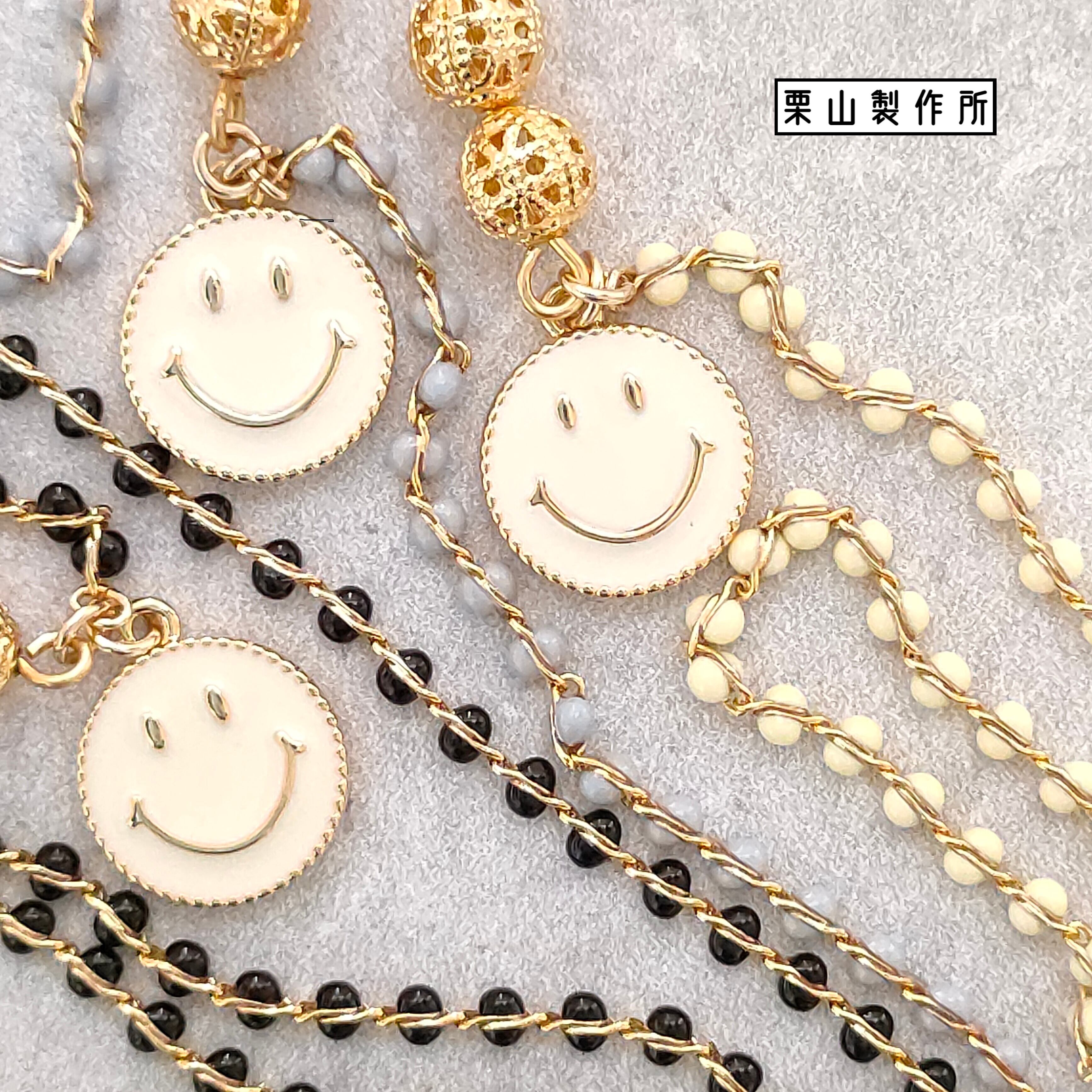 メガネ・マスクチェーン BC/笑顔満点のスマイルチャームにモノトーンチェーンを使用!いつもニコニコで周りも元気になる!はず!