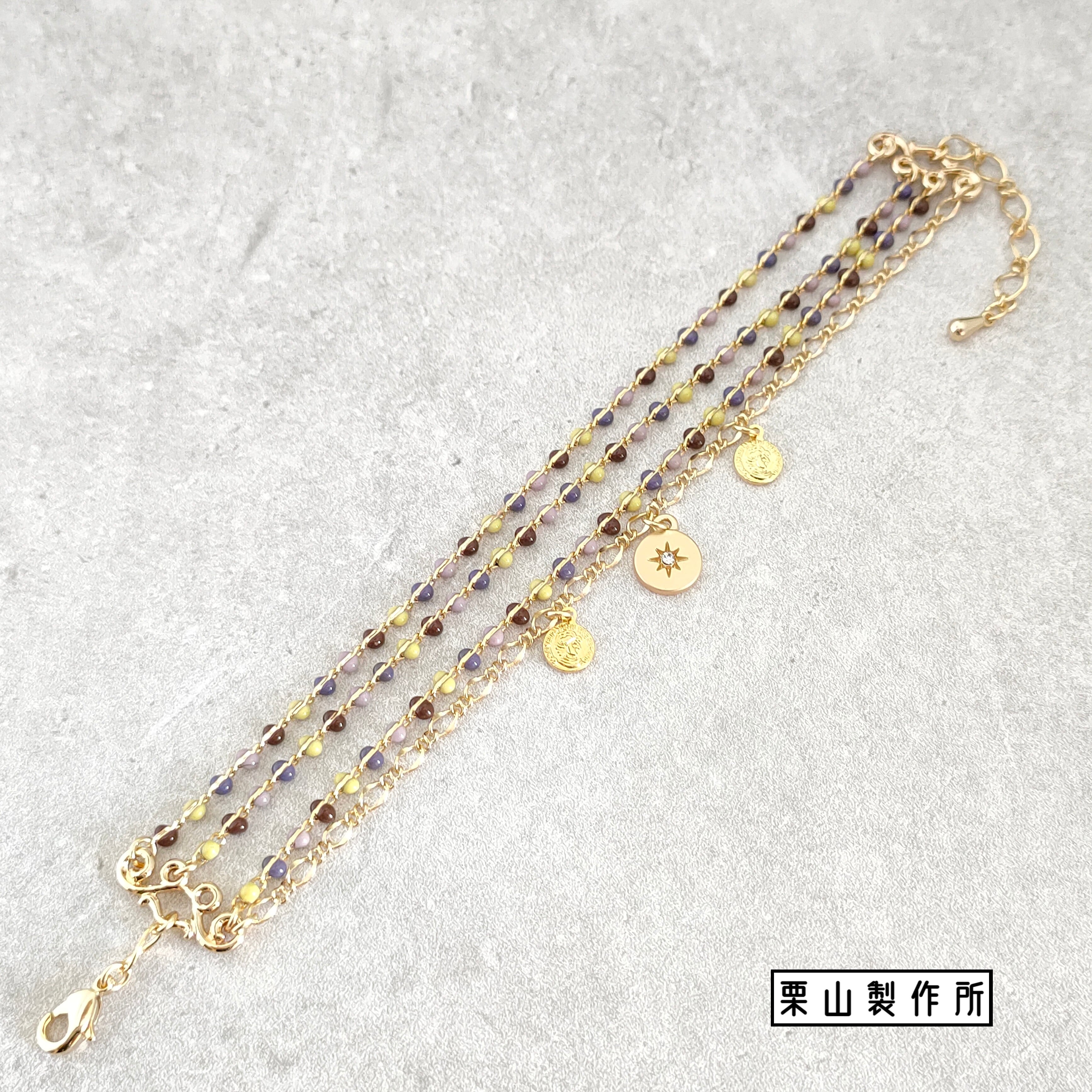 カラフルなミックスチェーンとシンプルなモノトーンチェーン3連に