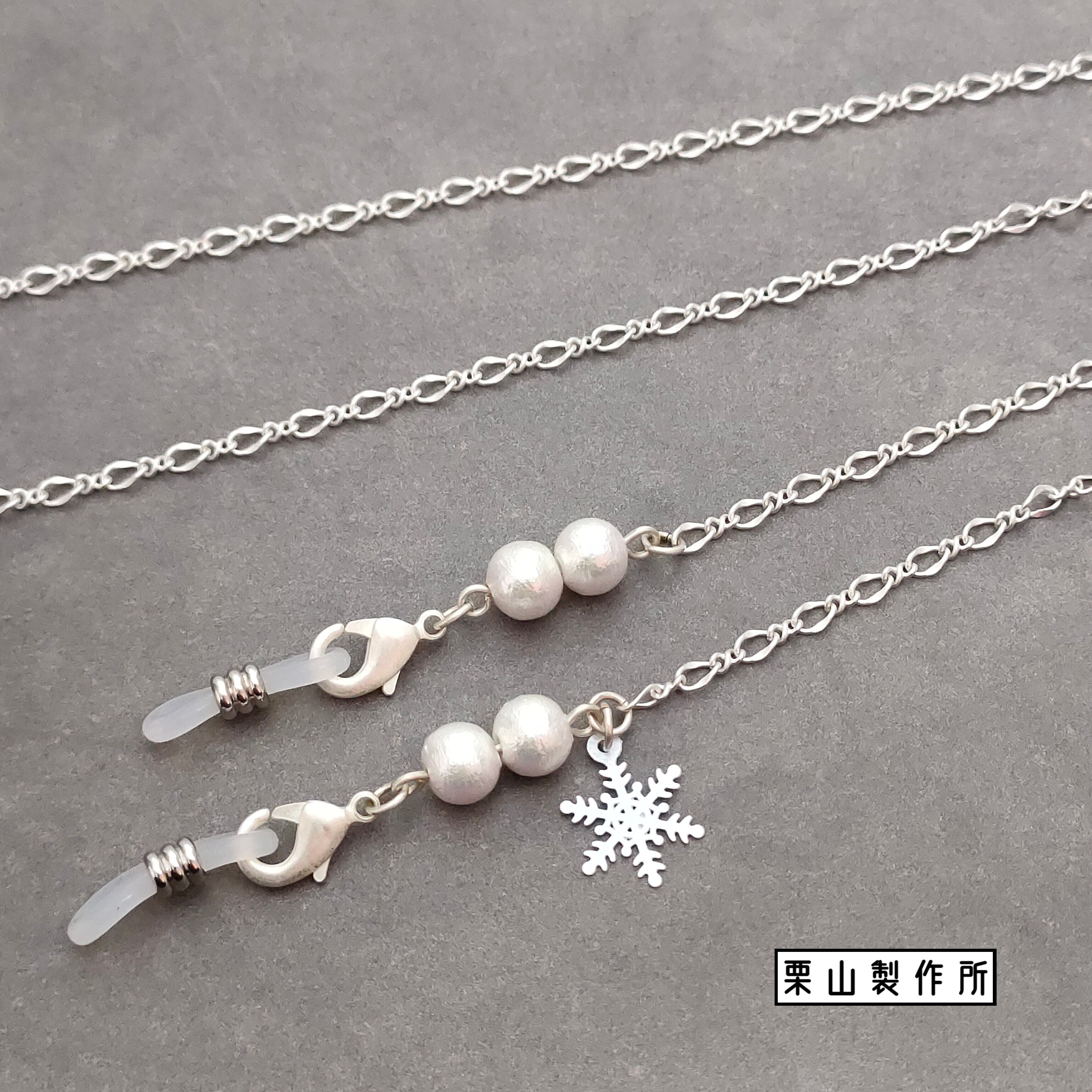 メガネ・マスクチェーン BC/雪のチャームにキュートなパステルビーズを合わせ!マットホワイトでフェミニン&エレガントに!