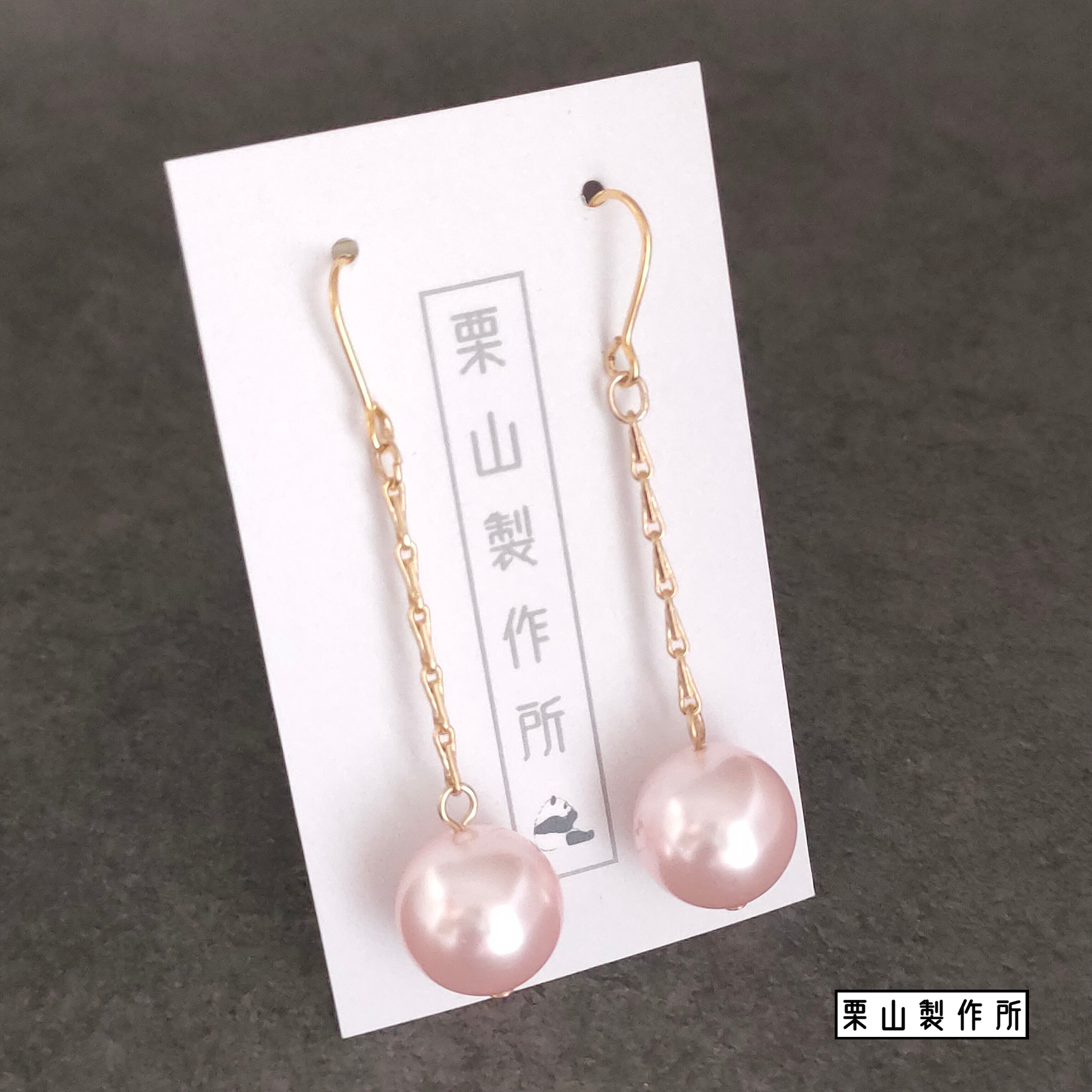ピアス・イヤリング GC/しっとり光沢に輝くパステルの大粒のパールを涙型の個性的なチェーンを合わせ、キュートに揺れる!