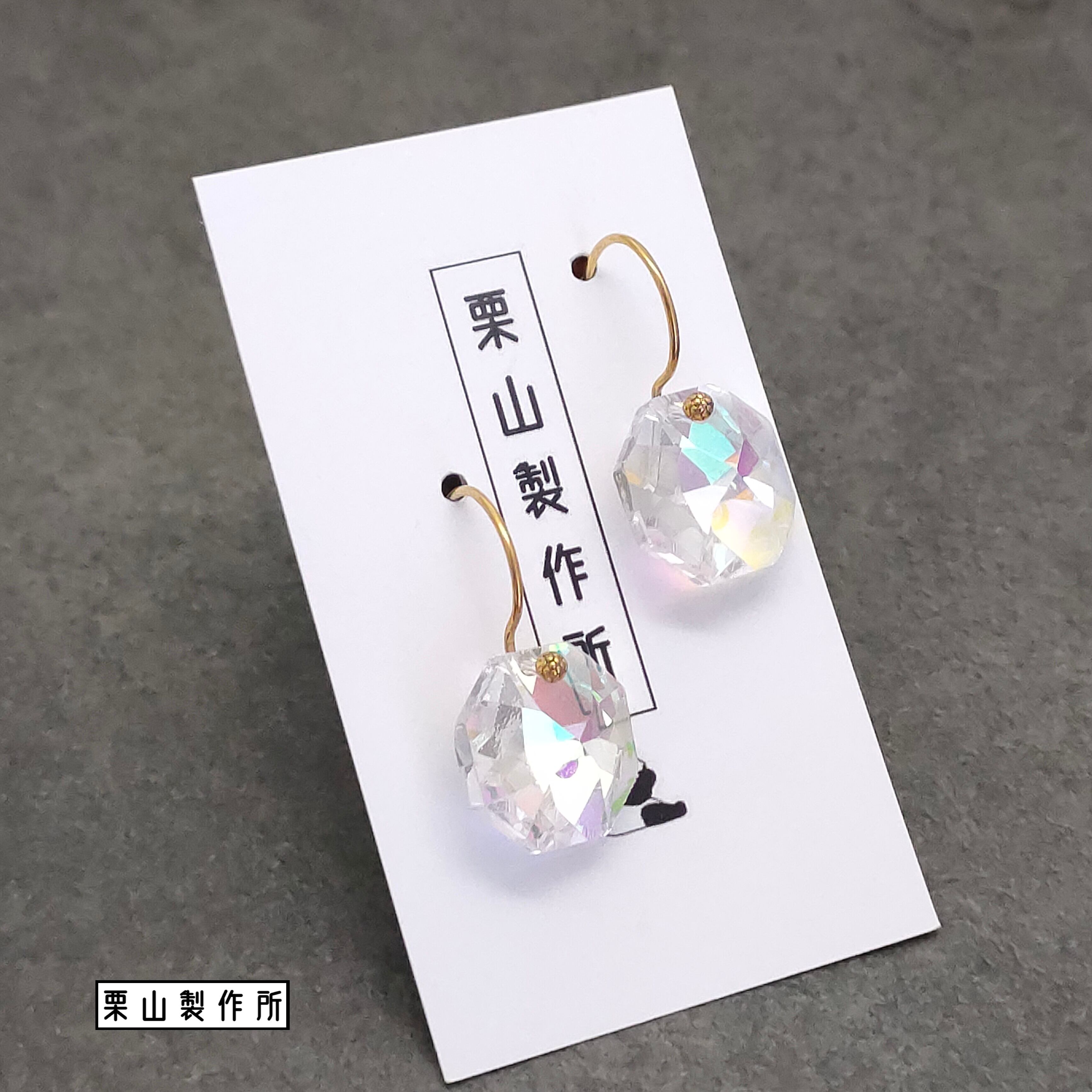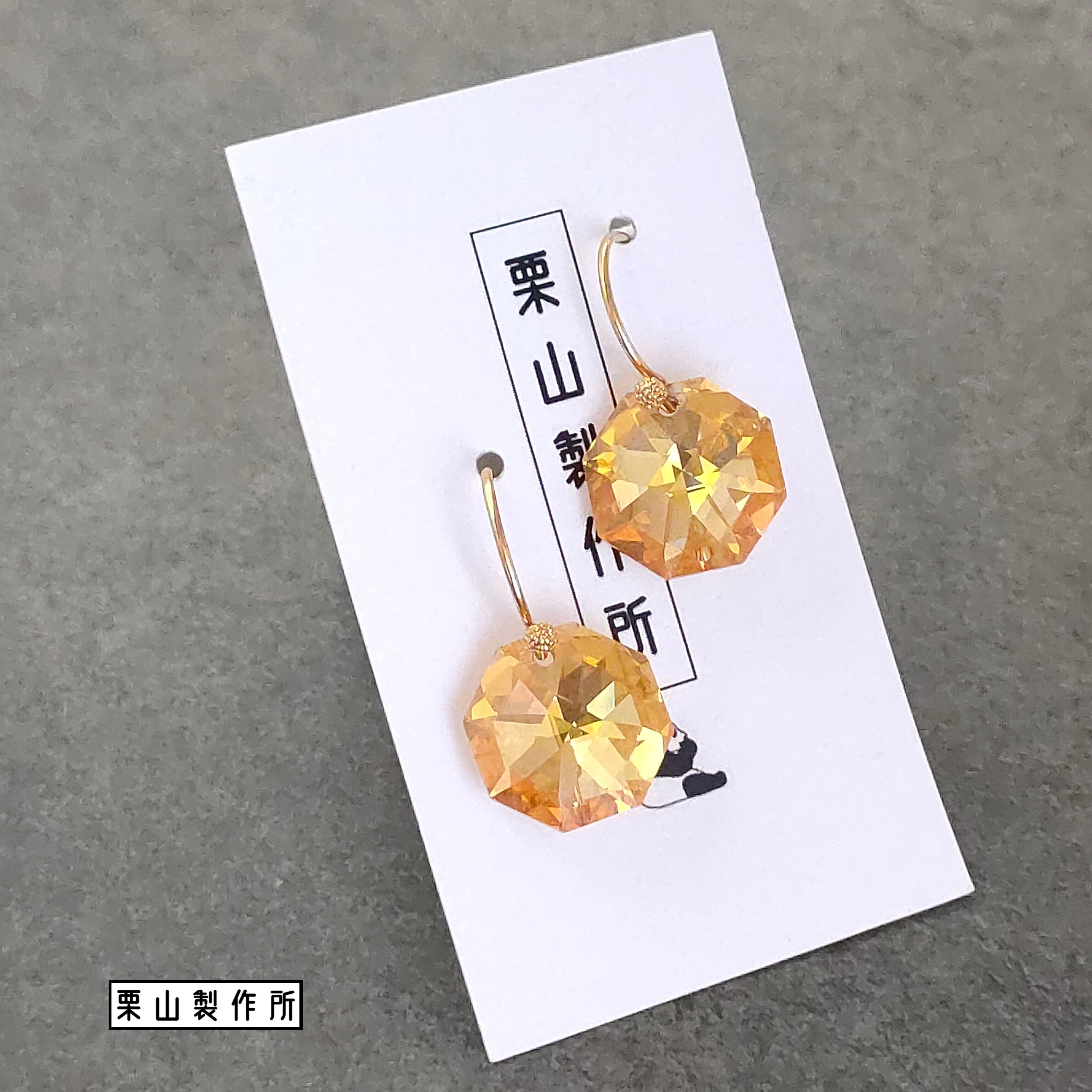 オクタゴン(八角形)の大粒のクリスタル(14㎜)を一粒!のピアス・イヤリング!