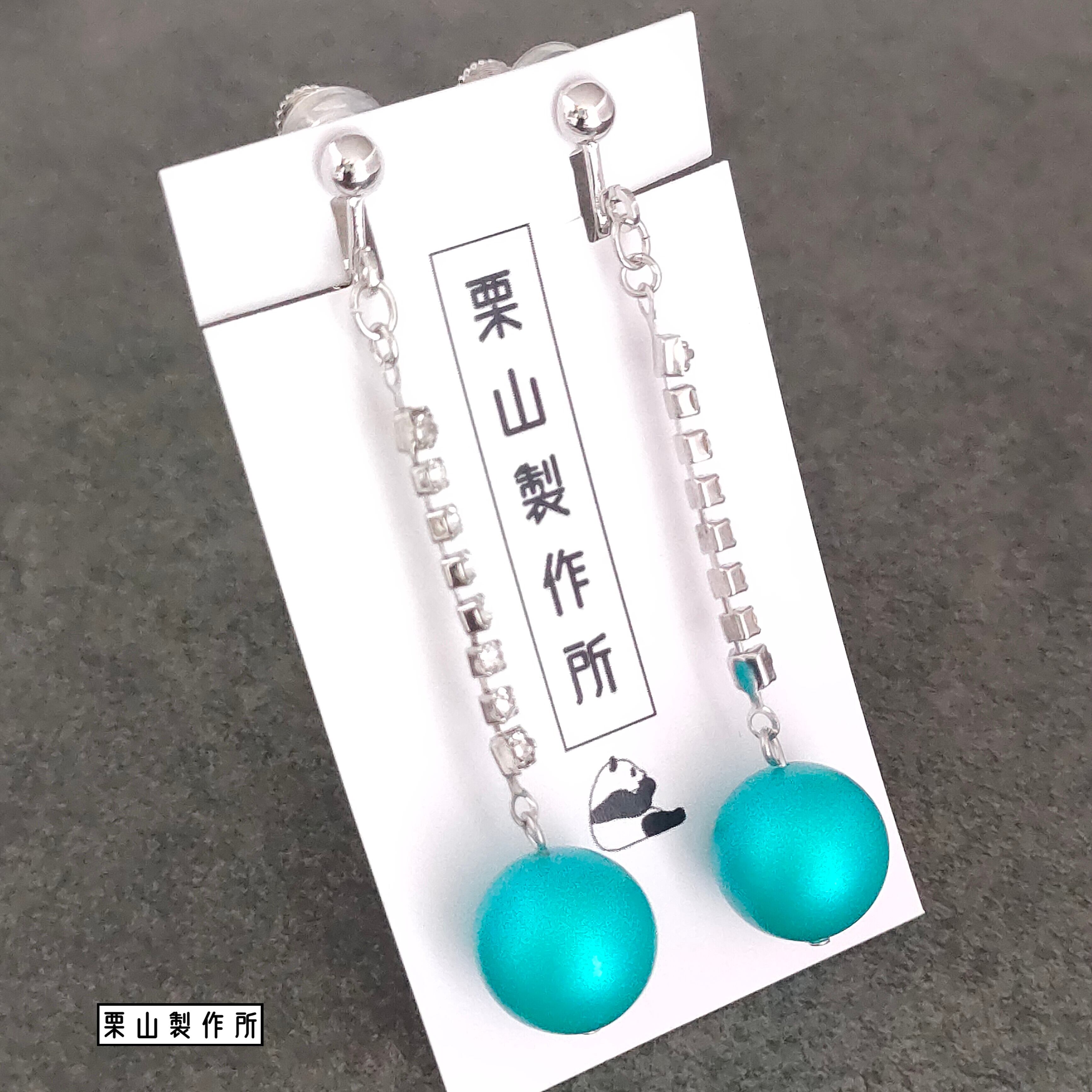 ピアス・イヤリング GC/大きめの1粒ターコイズにガラス入チェーンに吊り下げて!鮮やかに揺れるエ!スニックに美しく!