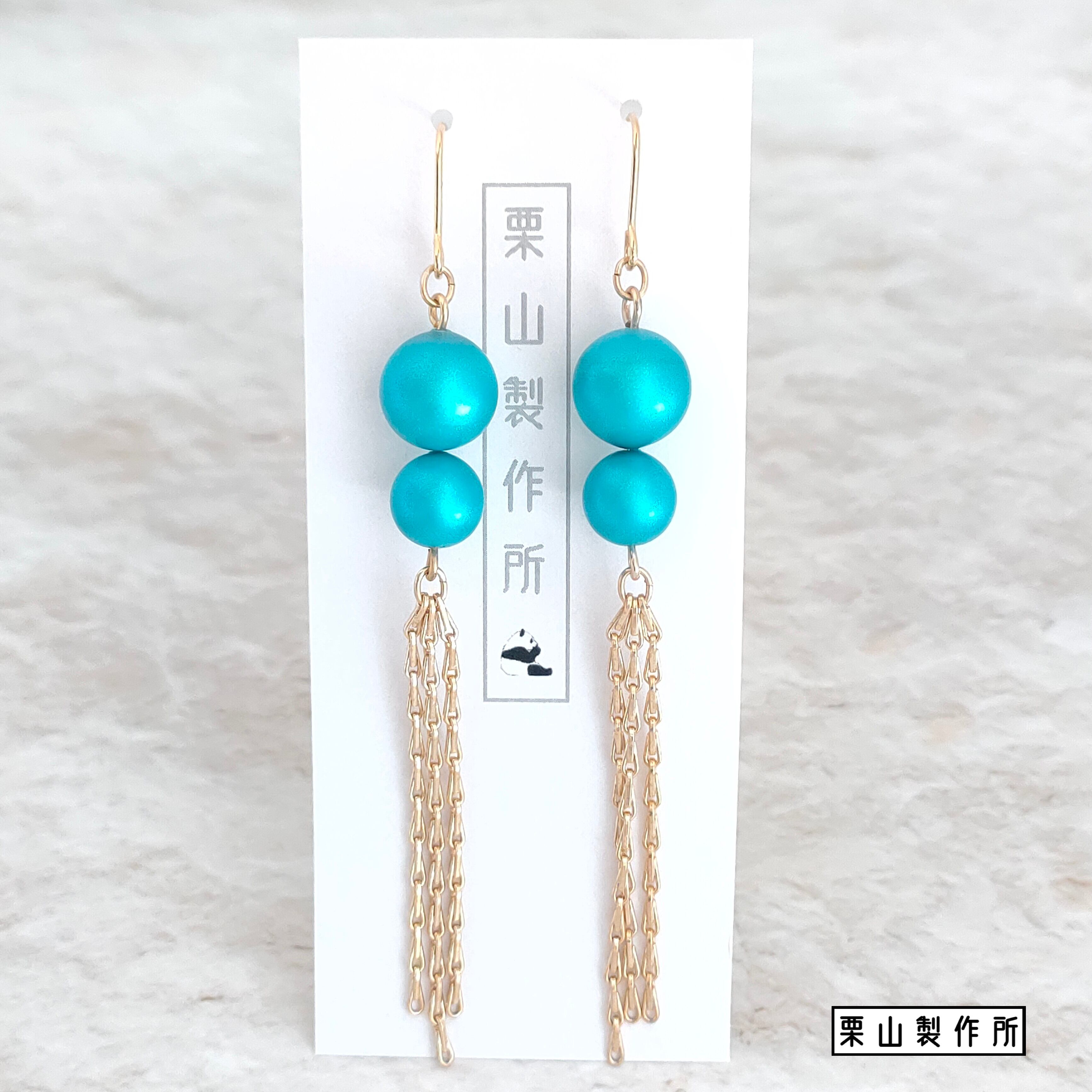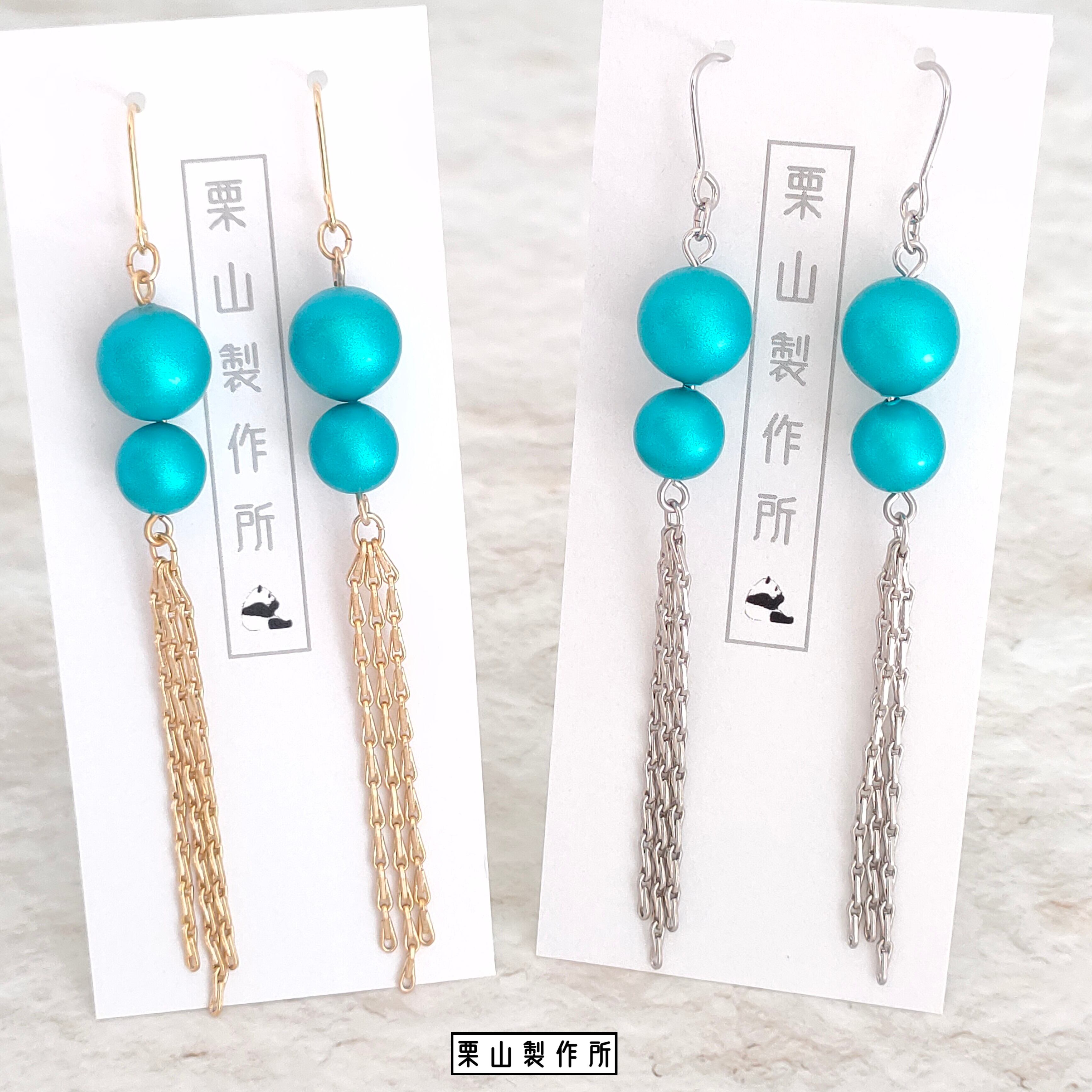 ピアス・イヤリング GC/2粒ターコイズに長めのチェーンを揺らして!オリエンタルな輝き!美しくゴージャスにエスニックに!