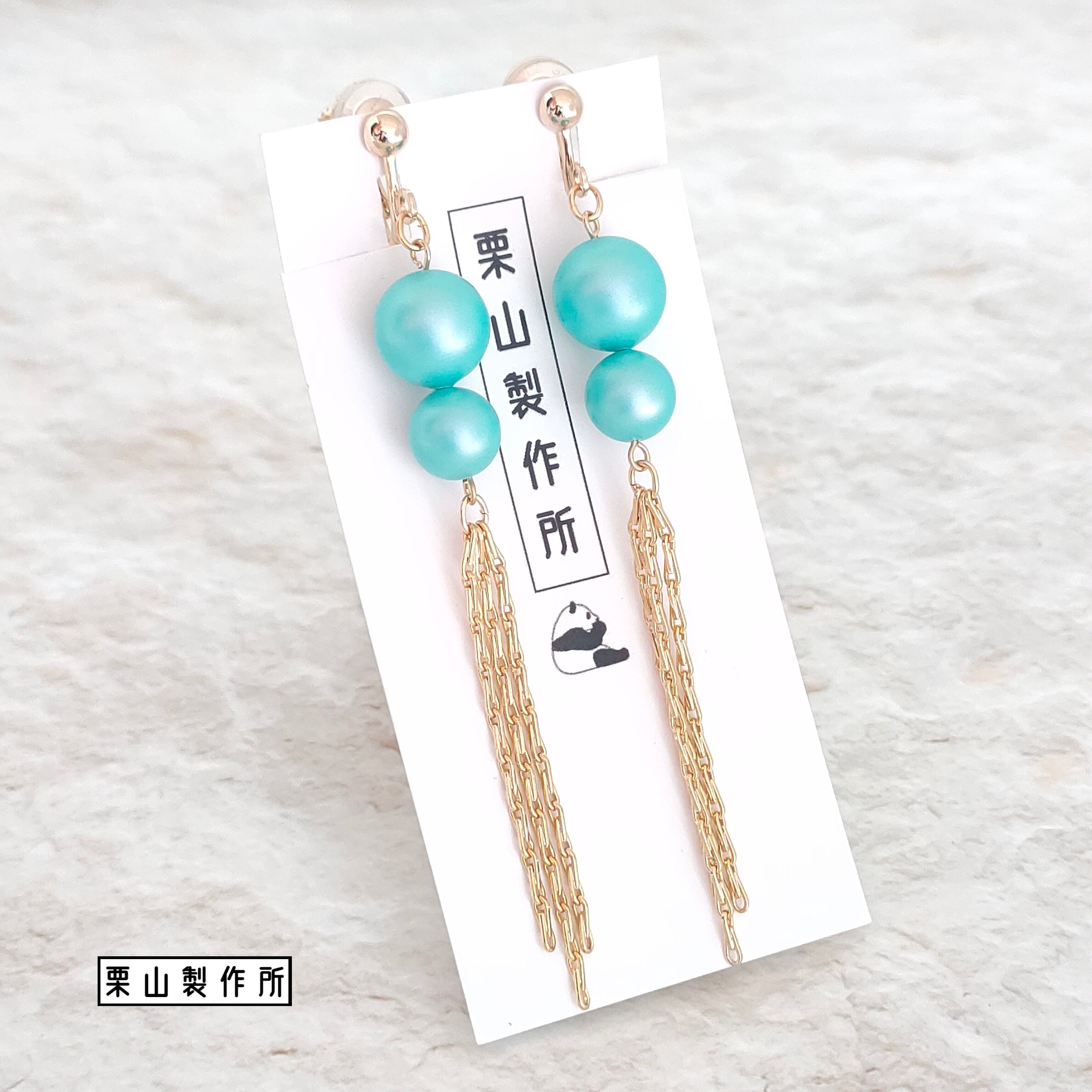 ・GC26 ライトターコイズ2粒ロング /ゴールド